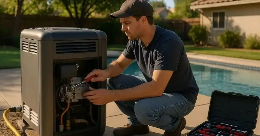 Pool heater repair problems in Bannockburn, Georgetown? HVAC Georgetown finds the cause, replaces igniters, sensors, gas valves, control boards, and heat exchangers, clears scale, and confirms operation so the water warms up without unnecessary upsells.