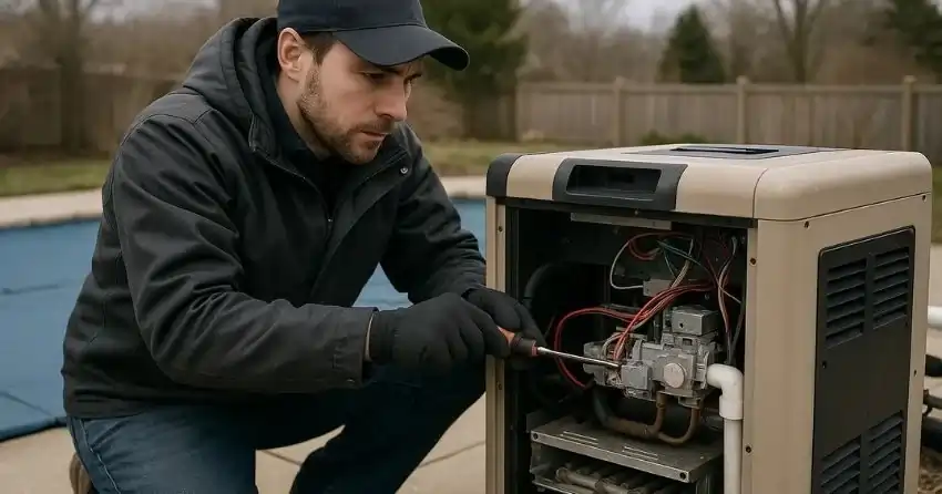 Pool heater repair problems in Bannockburn, Georgetown? HVAC Georgetown finds the cause, replaces igniters, sensors, gas valves, control boards, and heat exchangers, clears scale, and confirms operation so the water warms up without unnecessary upsells.
