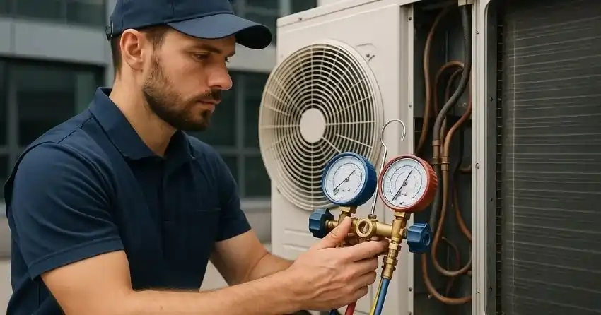 Heat pump repair problems in Bannockburn, Georgetown? HVAC Georgetown finds the cause, replaces reversing valves, defrost boards, capacitors, fan motors, sensors, and compressors, calibrates controls, and confirms safety so comfort returns without unnecessary upsells.